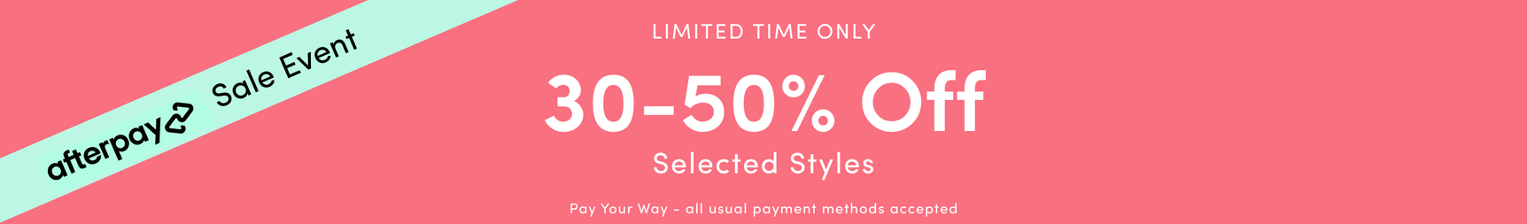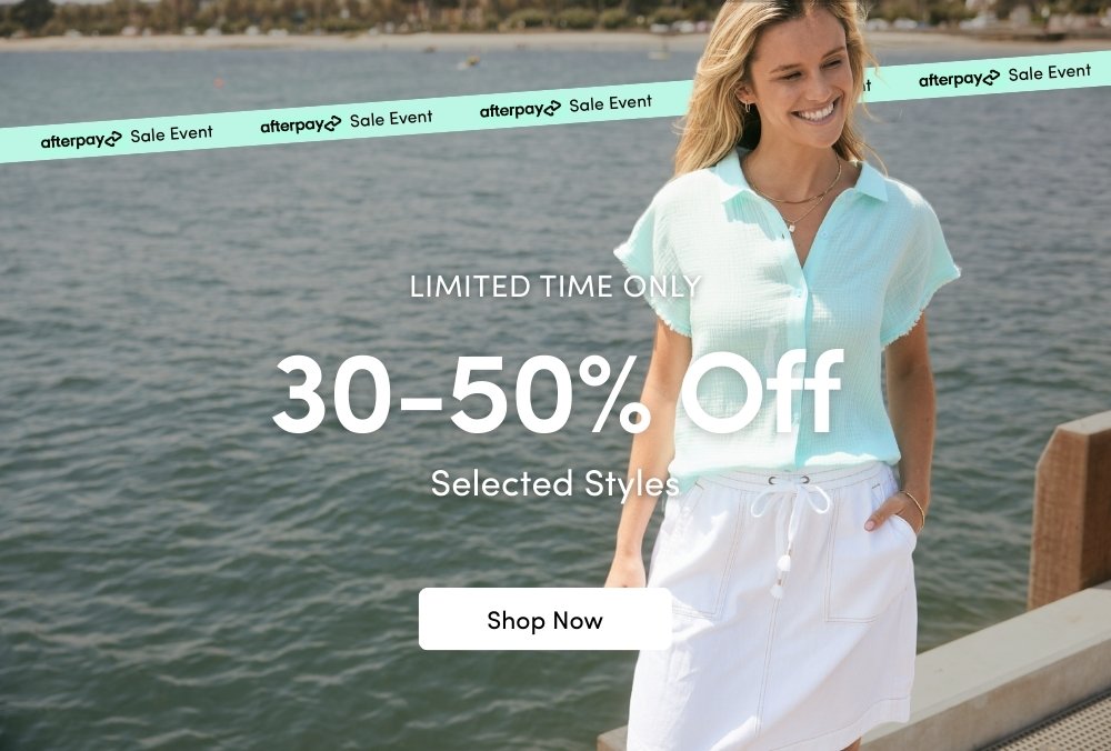 Save 30% - 50% Off Selected Styles in-store and online. Discount on full-priced products applied automatically at checkout. Sale products already reduced will remain at prices shown. Active from 19.03.2026 12:00AM to 22.03.2026 23:59PM AEDT. Further T&Cs apply