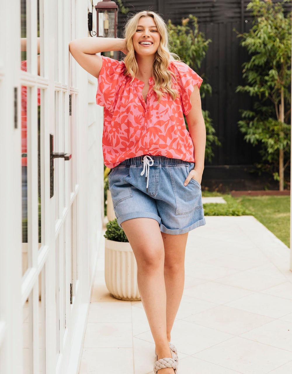 Add personality to your wardrobe with playful prints and versatile colours featured in Elm tops and tees. An abstract shirt or stripe tee pairs beautifully with denim for a fresh, relaxed feel. For an everyday favourite, try a top styled with classic jeans or brunch pants for a timeless, comfortable outfit.