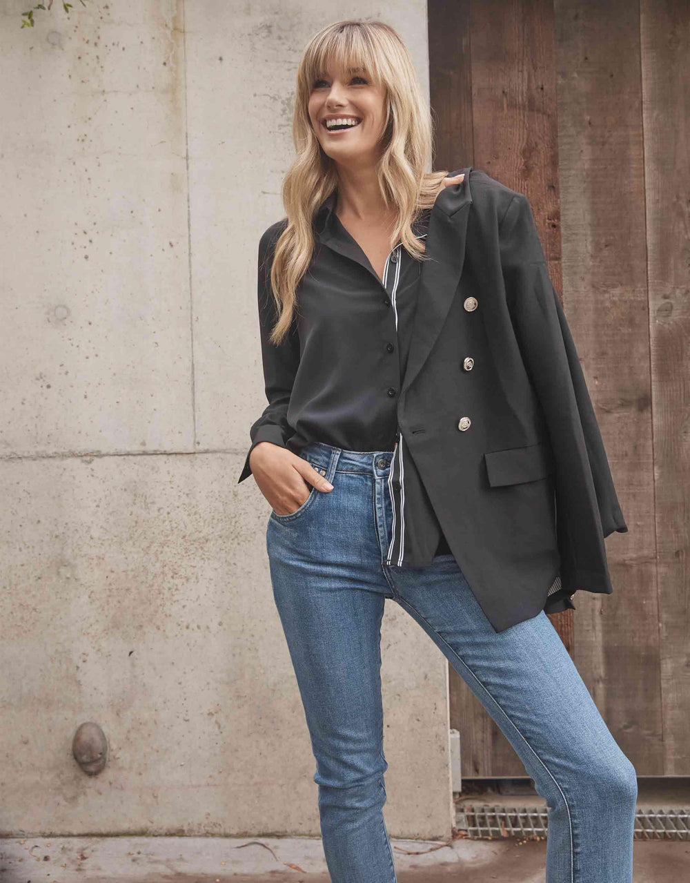 Pair a stylish blazer with a wide-leg pant or rib-waist linen pants for effortless sophistication. Don’t forget to add favourites like a ruffle-sleeved top to your wishlist today.