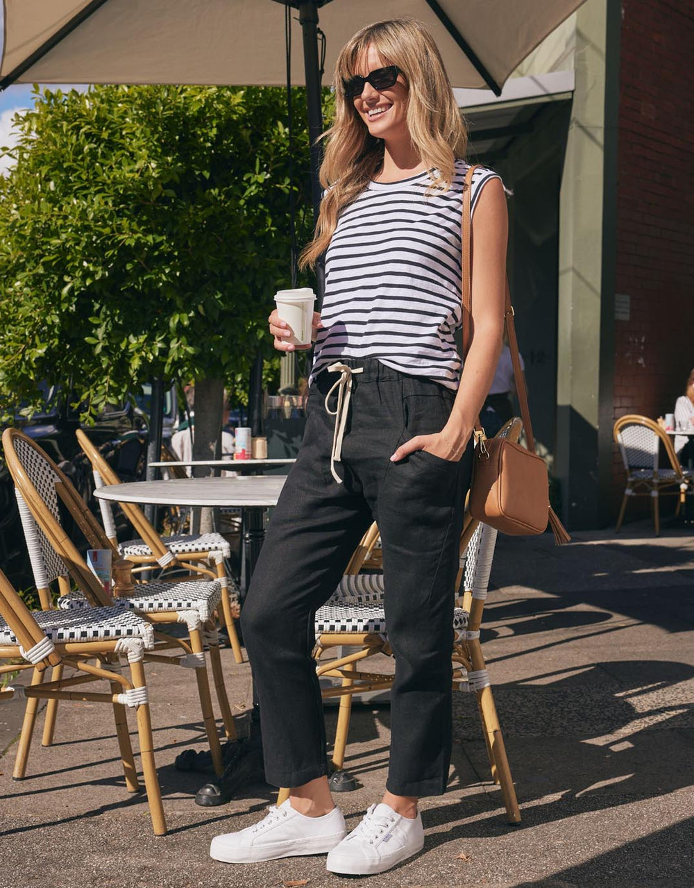 Our linen collection includes sizes 8–16 and ranges from 100% linen staples to carefully designed linen blends. Each piece offers that relaxed, luxe feel that makes linen so easy to wear day after day.