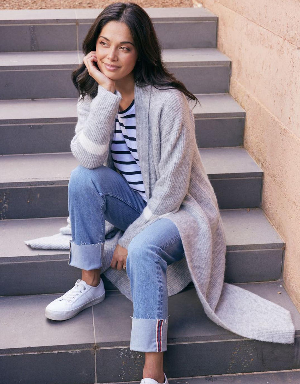 Our longline cardigans, made with soft, breathable fabrics, are great for casual outfits. Style them with lightweight knitwear or a long sleeve t-shirt for a simple look that feels easy and stylish.