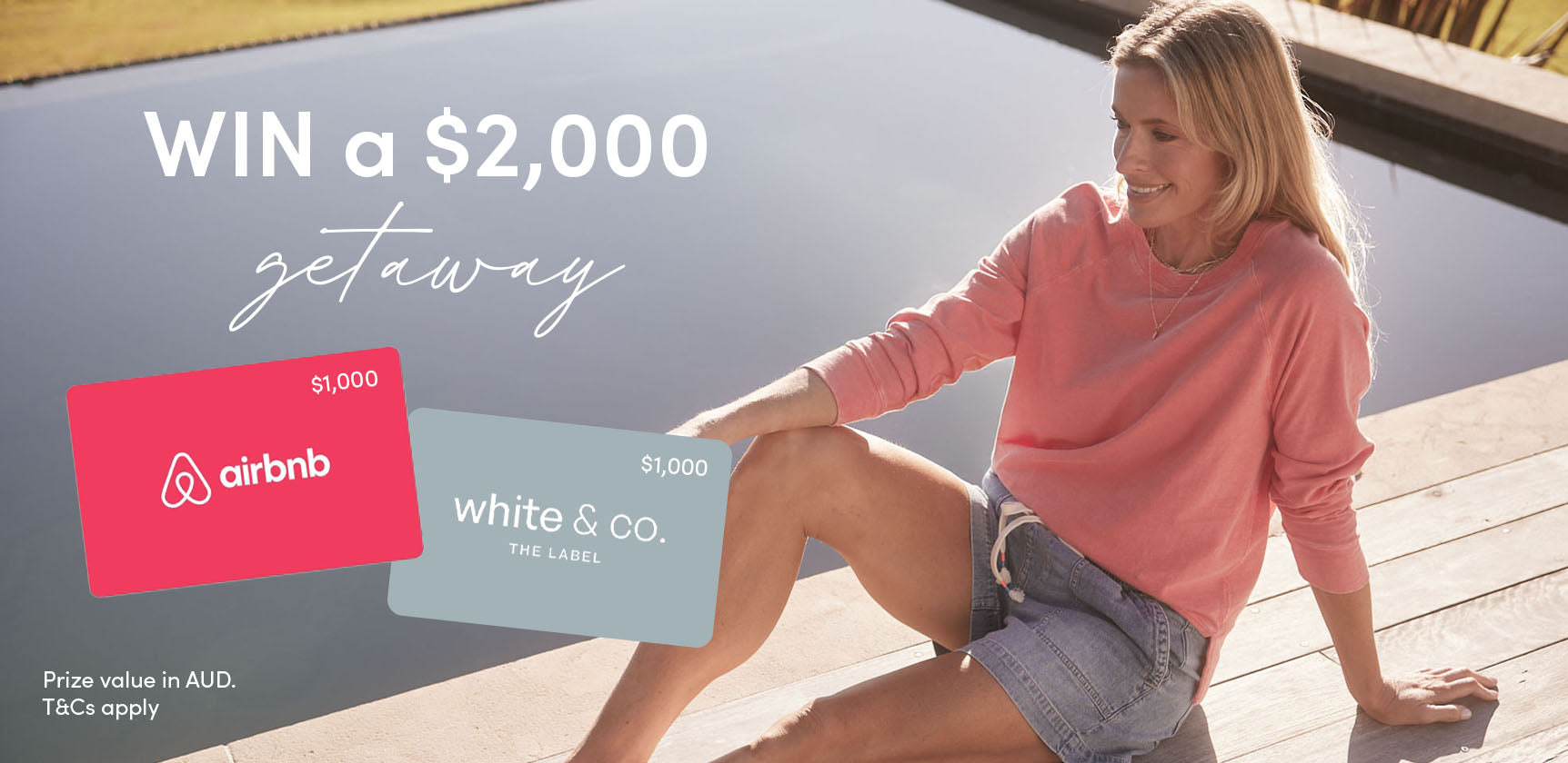 Prize Includes: 1 x $1,000 Airbnb Gift Card 1 x $1,000 White & Co. Travel Wardrobe